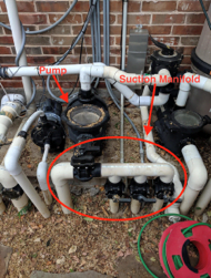 To identify the pipes that run to your skimmers, your pool pump must be running. Once your pump is primed and running properly, try turning each separate suction valve on and off, one at a time. If the suction at the bottom of your skimmer body stops, the valve to that skimmer is closed. To confirm this pipe and valve run to this specific skimmer, open the valve. If your skimmer resumes suction you have identified the valve correctly. Never run your pump with all the valves closed.